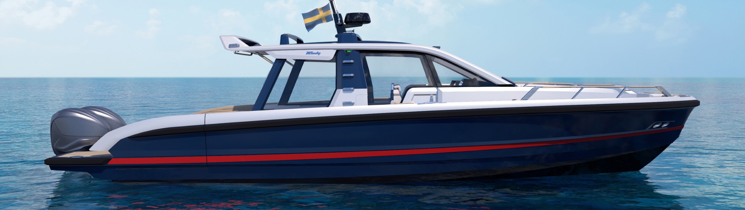 WINDY release renders of the stunning next development of the award winning SR60, built in the main production facility in Sweden. New models in build incorporate the options of huge 20ft balcony doors and enclosed helm with sliding doors.